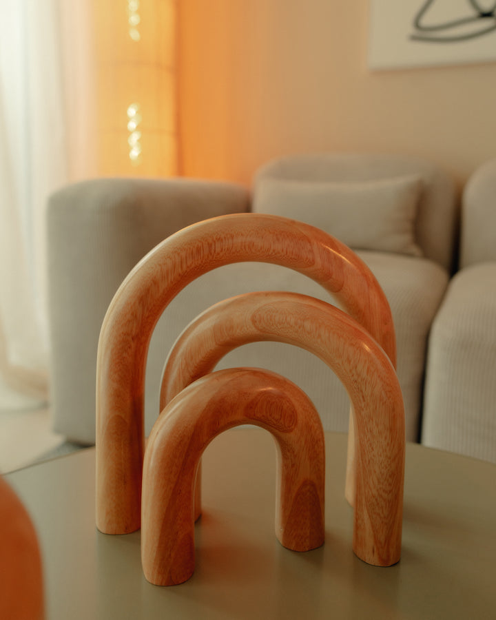 Su diseño se caracteriza por formas macizas y geometría suavizada. Estos aros son adecuados para enmarcar espacios, crear divisiones visuales o aportar identidad en cualquier ambiente.