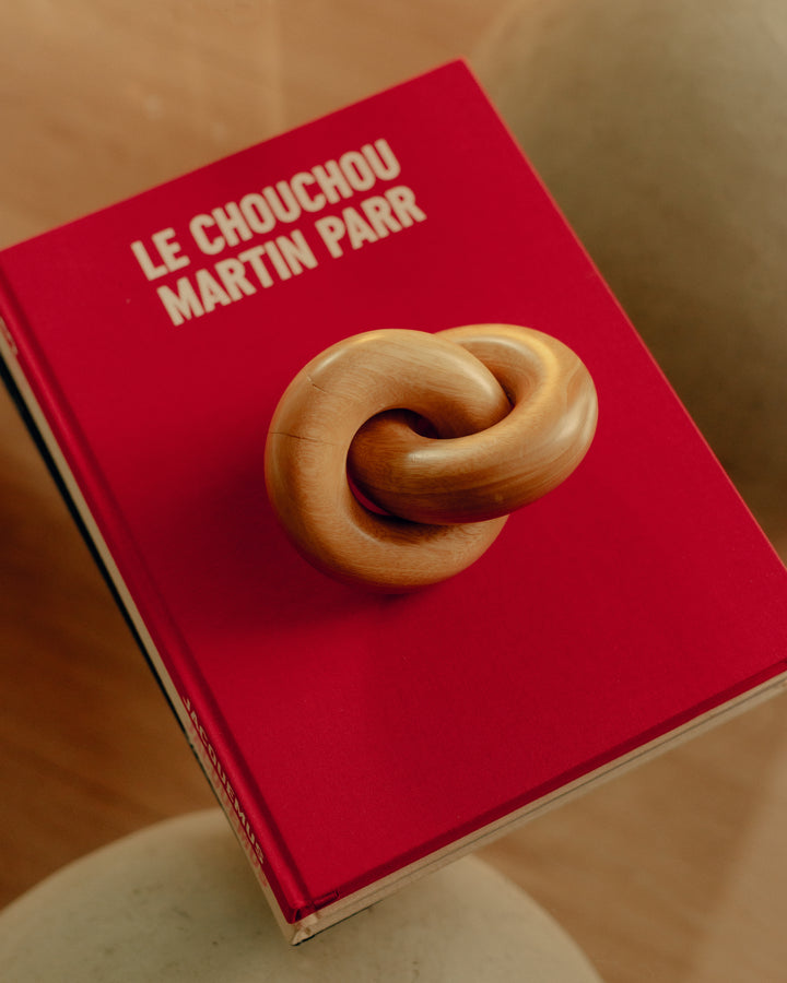 Se caracteriza por formas circulares y eslabones que contrastan robustez y ligereza. Es una pieza adecuada para pared, estanterías o como elemento central en mesas. Su estilo la convierte en una pieza adecuada para crear ambientes con identidad.
