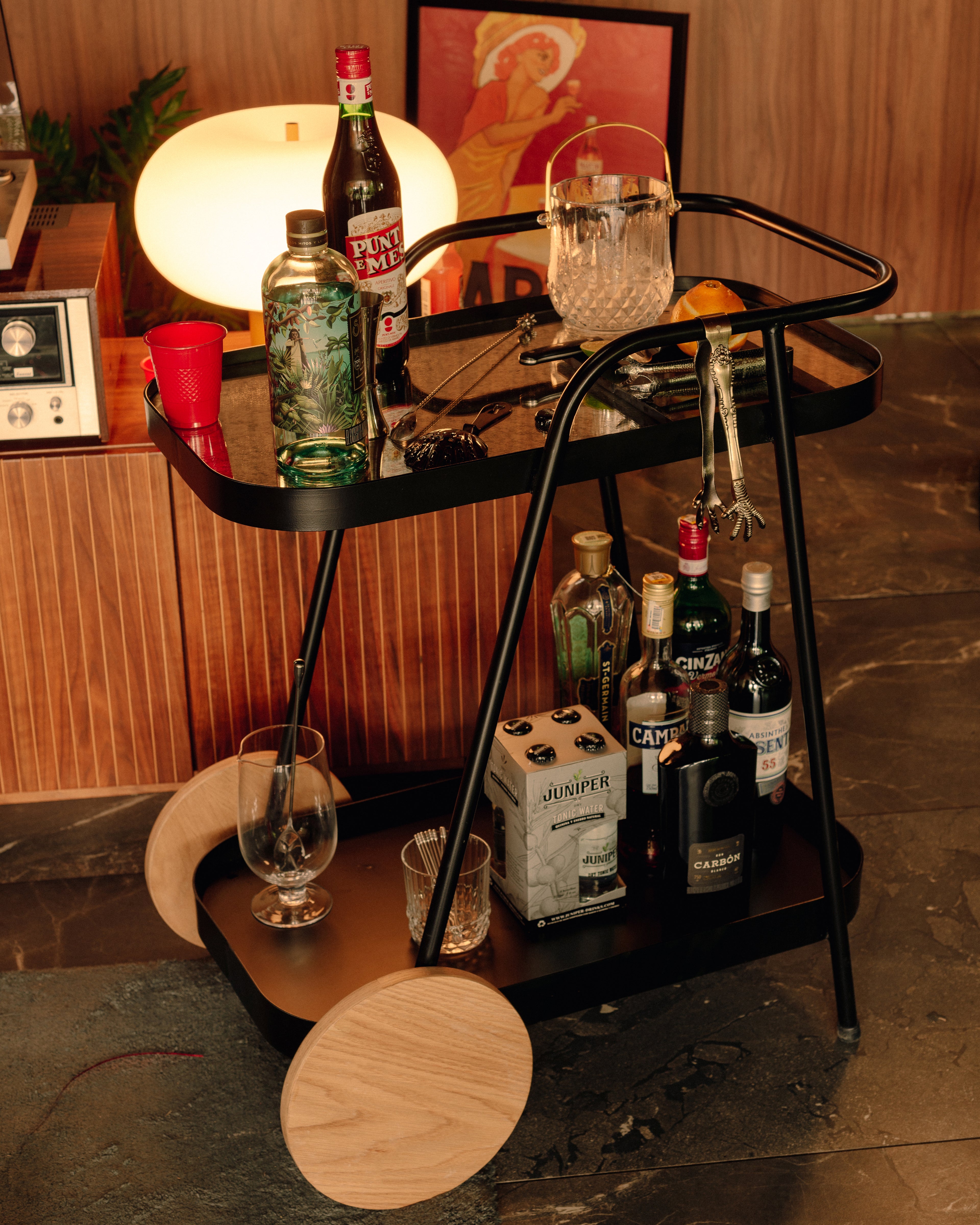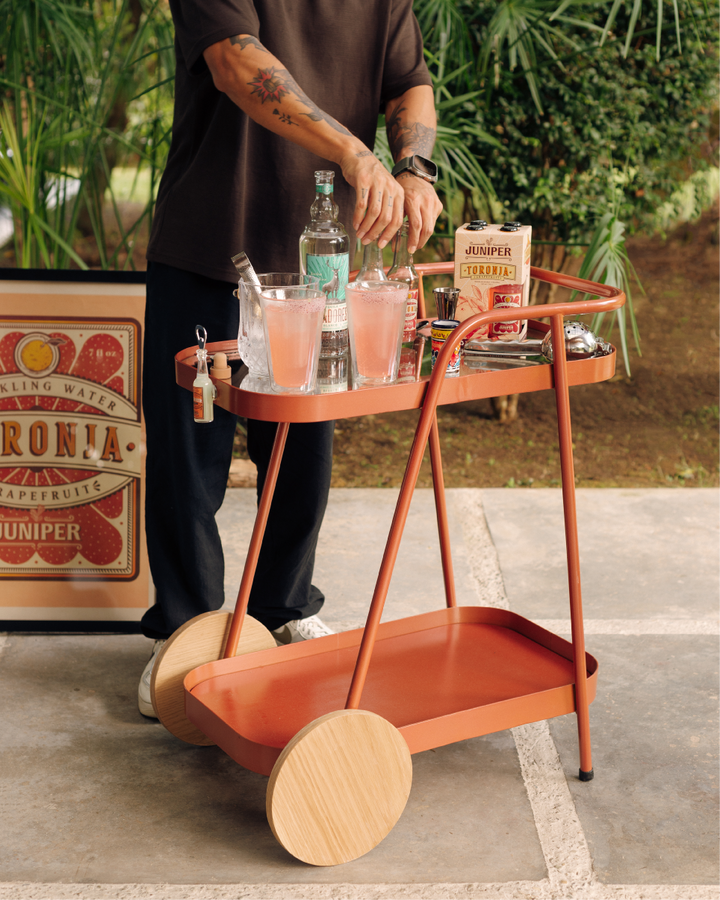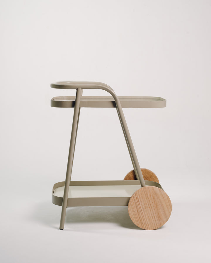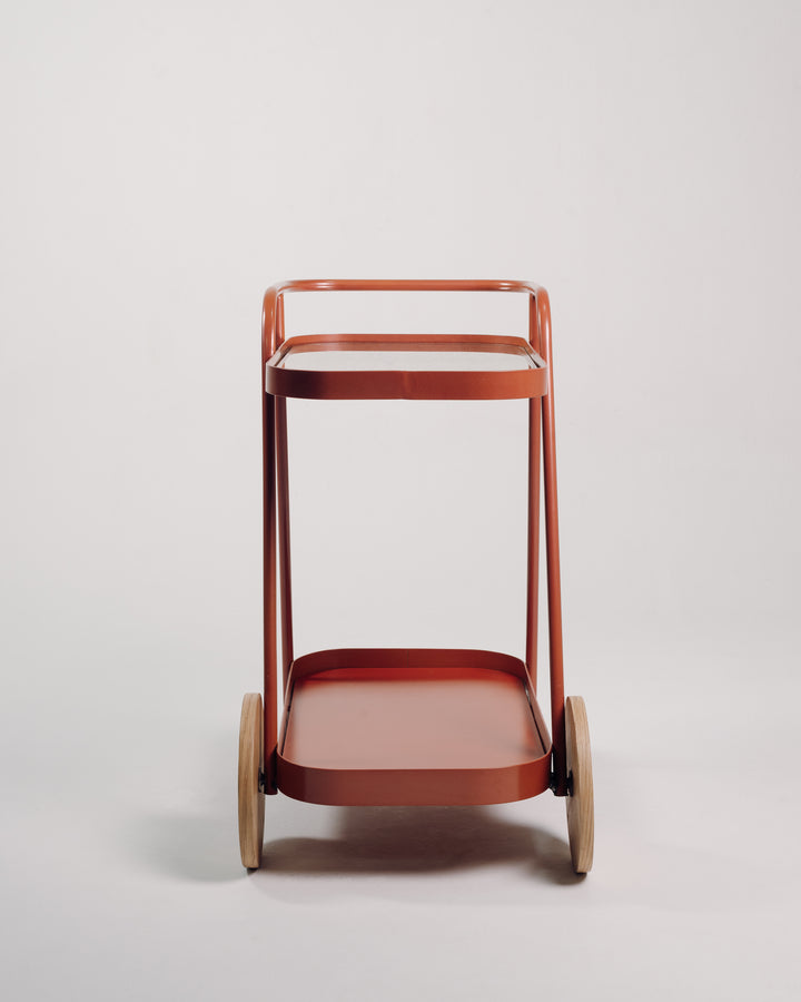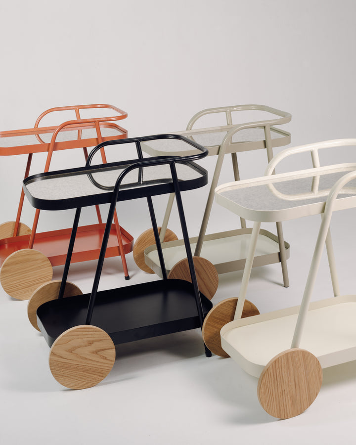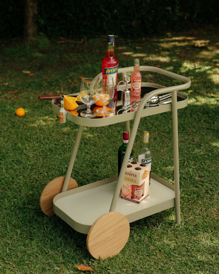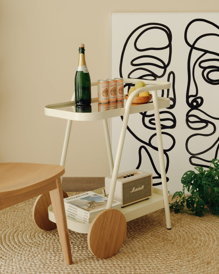 Su diseño se caracteriza por volúmenes livianos, líneas continuas y la combinación de materiales que aportan un estilo retro‑contemporáneo. El Carro Bar es una pieza dinámica. Su estilo la convierte en una pieza adecuada para transportar, organizar y acompañar momentos de compartir, descanso y ocio.