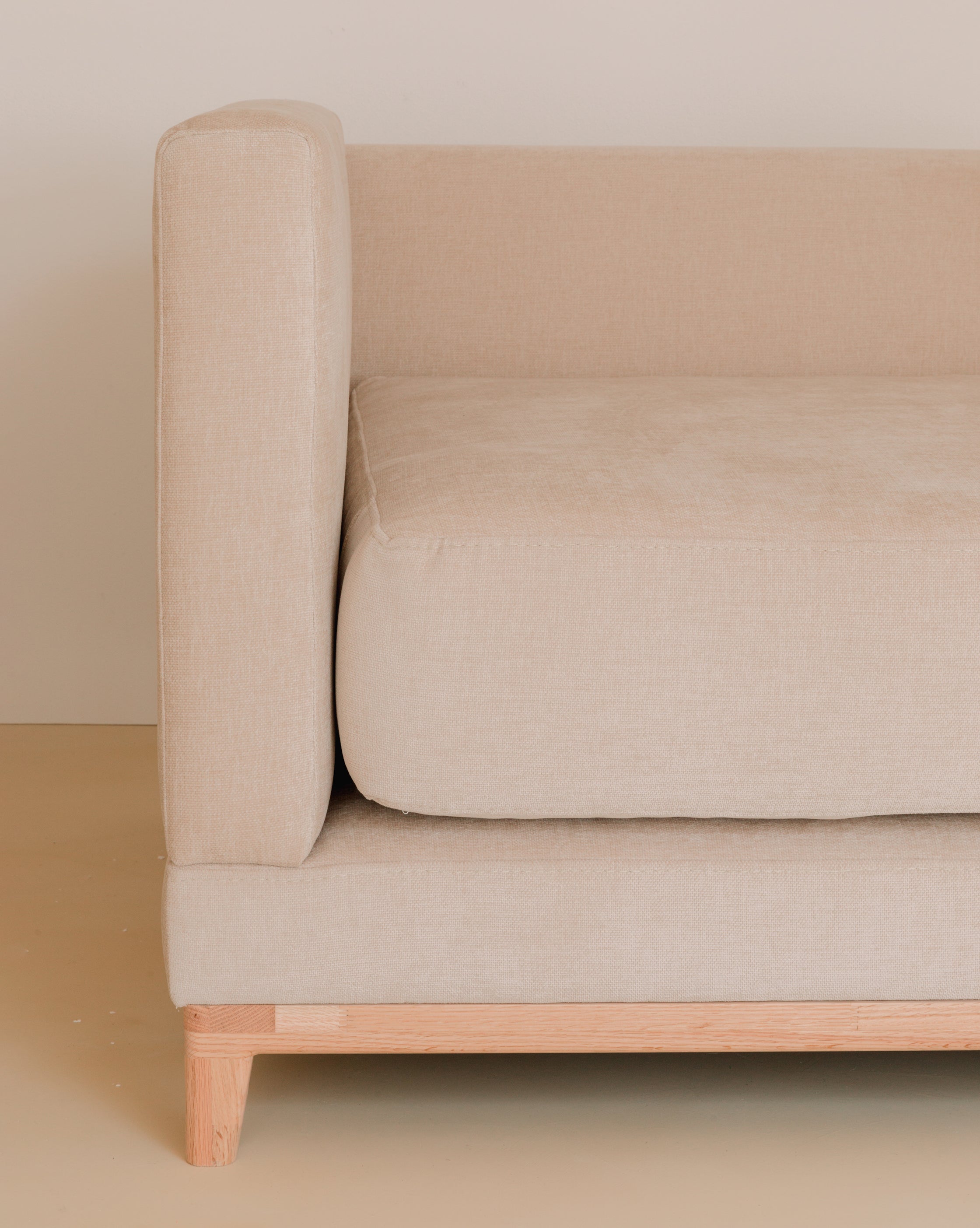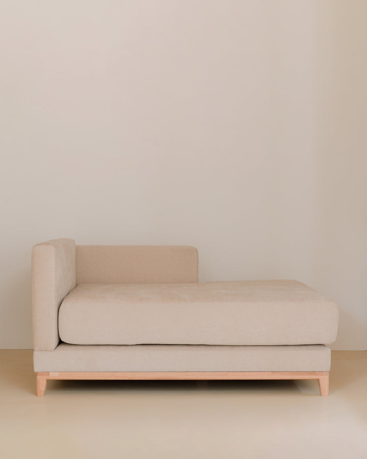 Sofá Pausa modular para descansar y disfrutar, diseñado para adaptarse a tus necesidades cambiantes! Con su diseño inteligente, puedes juntar dos módulos para transformarlo en un espacioso sofá cama, perfecto para invitados o para esas tardes de película acogedoras. Nuestro sofá es elaborado en roble americano con acabado natural.
