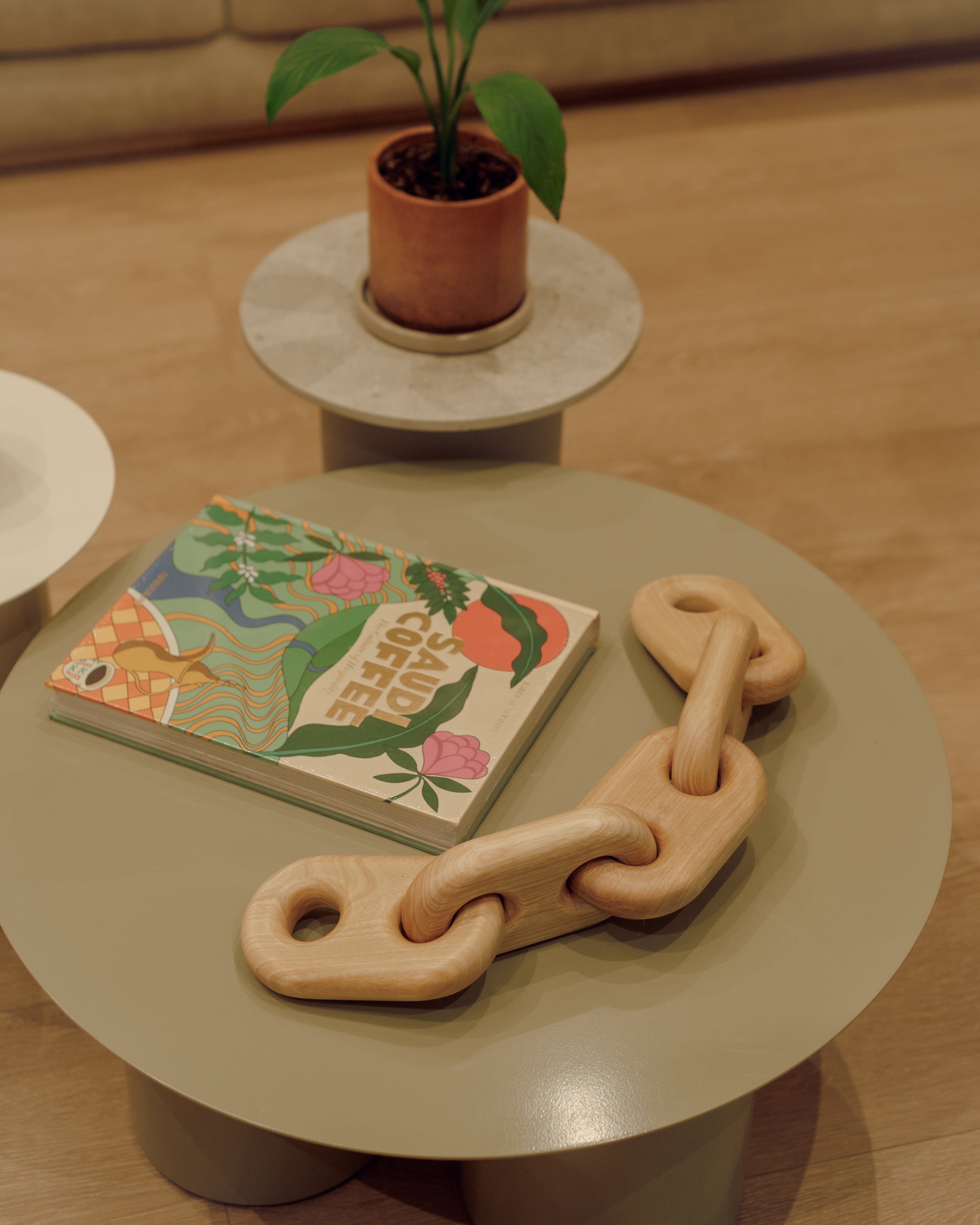 Brisa está construida en madera Urapán con acabado natural que resalta la veta del material. Es un producto elaborado a través de oficios artesanales; por tanto, cada pieza es única y las irregularidades son propias del proceso y del material. Es un complemento adecuado para uso en interiores.